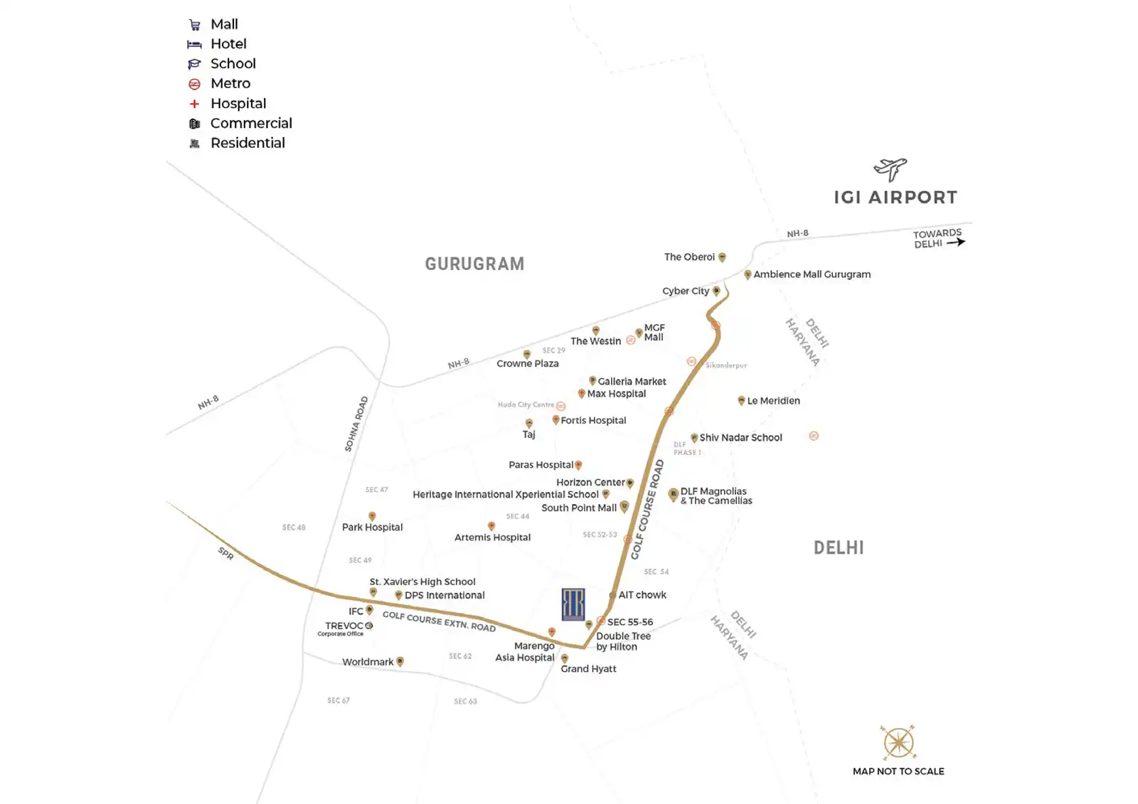 Here are some of the top location benefits of Trevoc Sector 56 Gurgaon