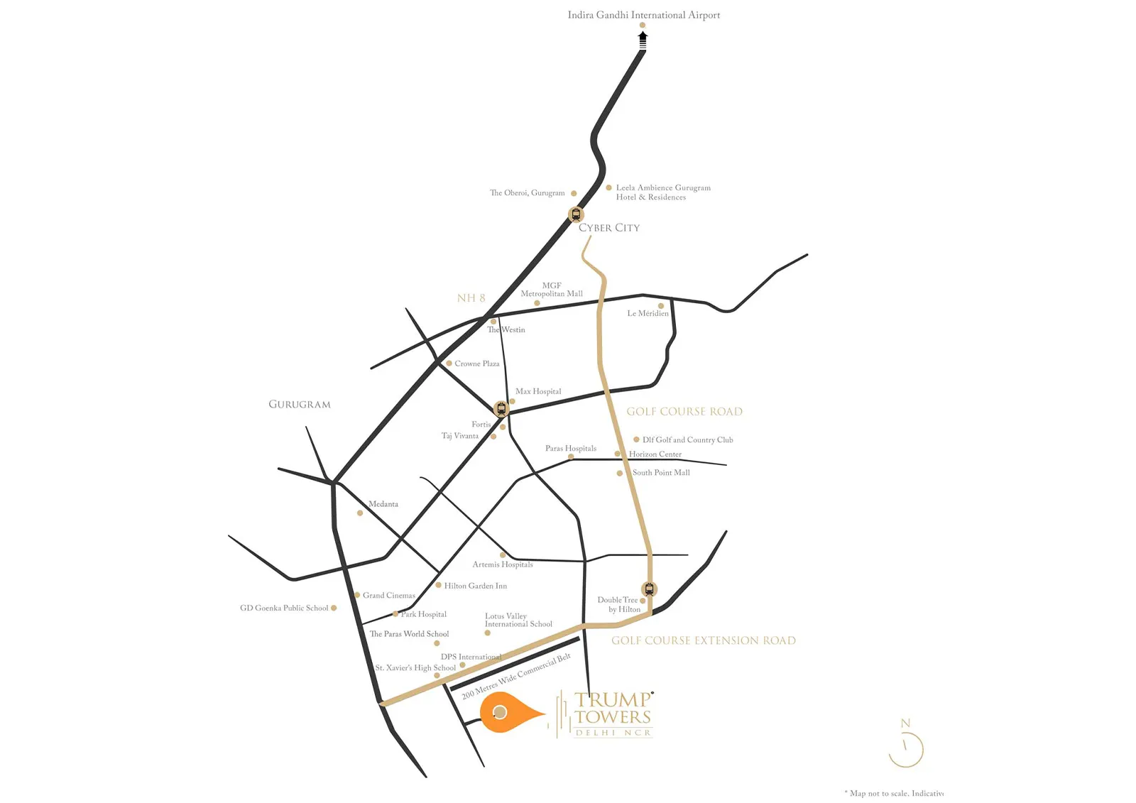 The strategic location of Trump Towers Sector 65 offers excellent connectivity to Gurgaon’s key commercial hubs, making it ideal for working professionals. Prominent educational institutions such as St. Xavier's High School, DPS International, and Heritage School are located within a 5 km radius, ensuring quality education options for families.